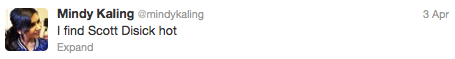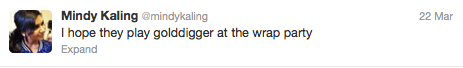 2. She’s smart. Not only are her tweets super insightful (see below), but she wrote on The Office, wrote a book and now writes her own show – The Mindy Project. She’s just super talented and really humble about it, which is awesome.